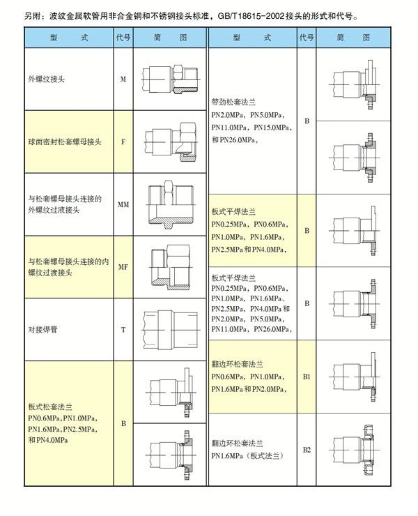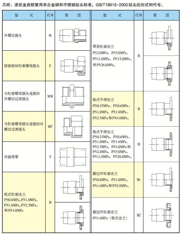 波紋金屬軟管標(biāo)準(zhǔn)接頭型式和代號